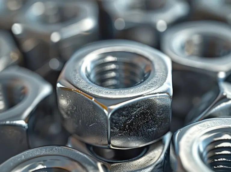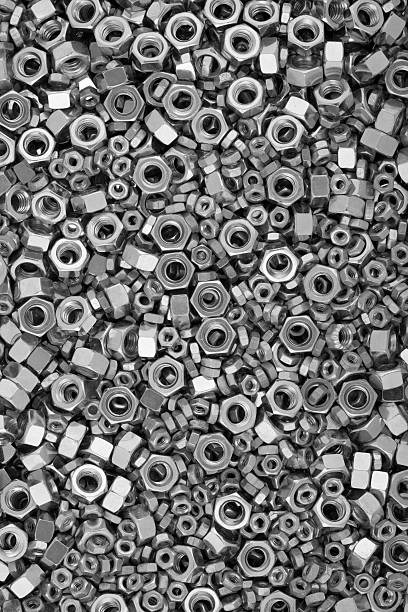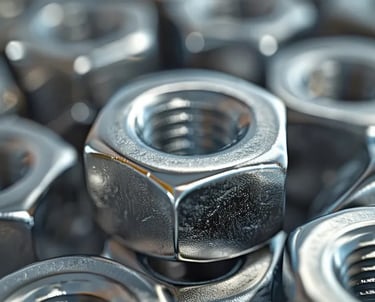 Precision threaded nuts designed to securely fasten bolts in mechanical and industrial assemblies.
