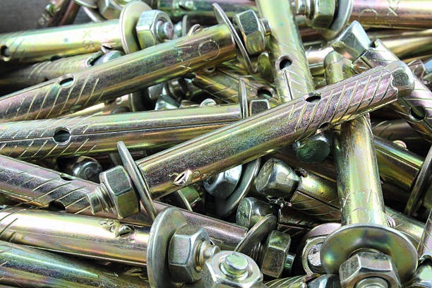 Heavy-duty bolts designed for securing structured to concrete foundations.